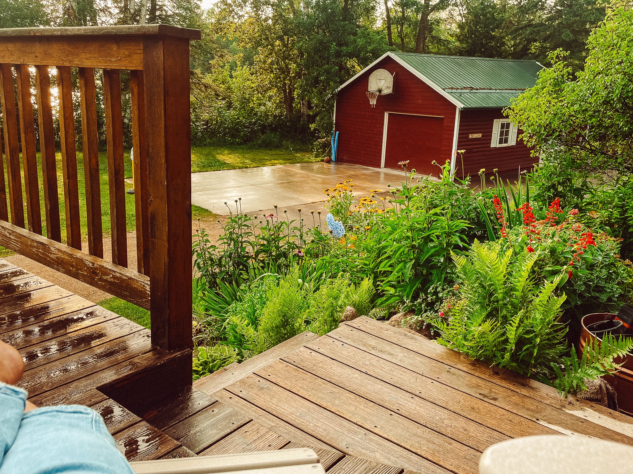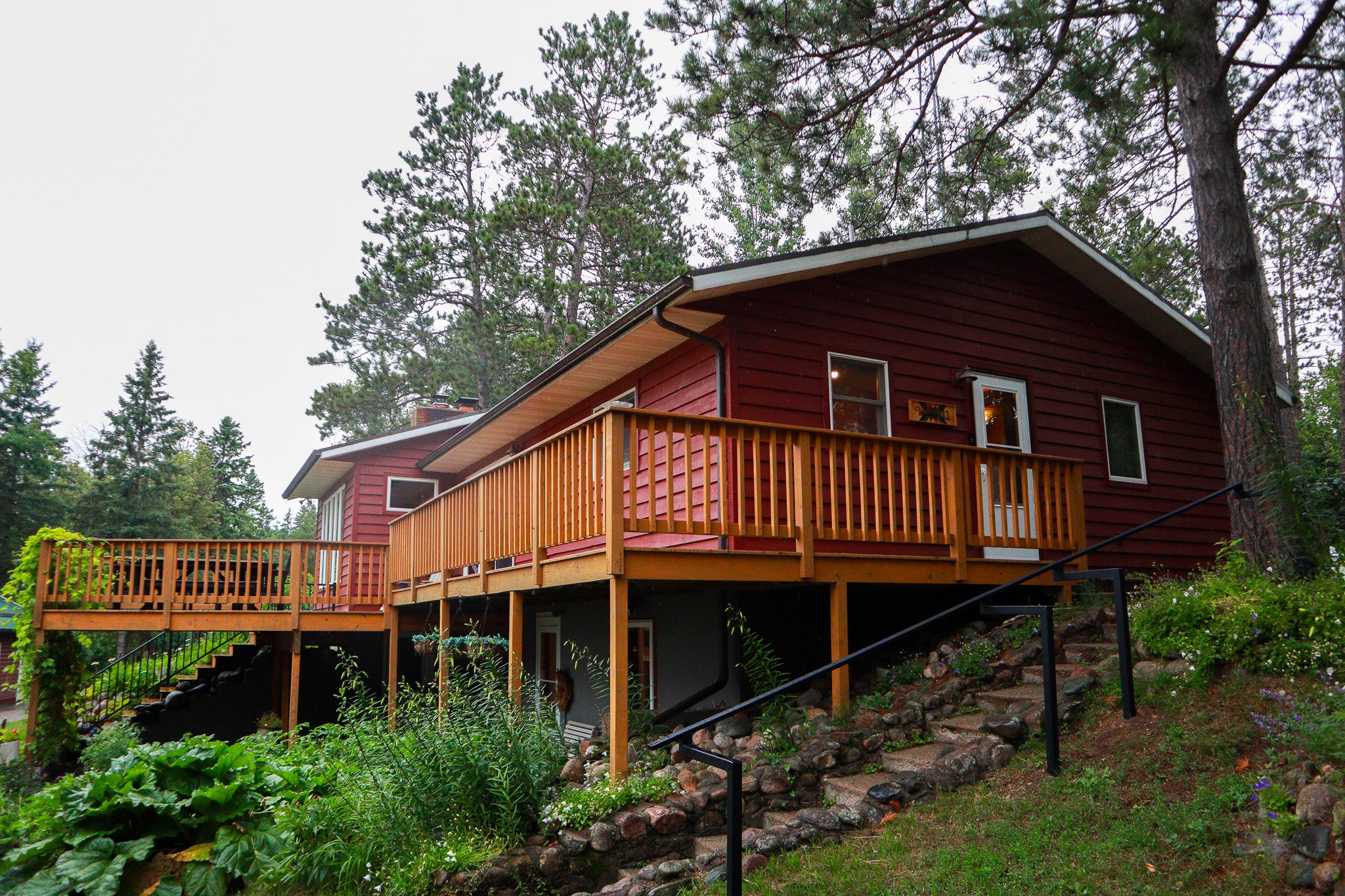 Two stories with wood fireplace upstairs and gas fireplace on lower level. Lower level walkout to garden, recreational yard, and lake. Main level deck with stairs to lakeside and same hillside level as the Lodge.