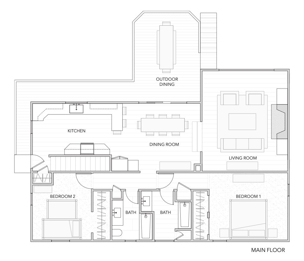 Hillside Level: 2 Bedrooms & 2 Bathrooms