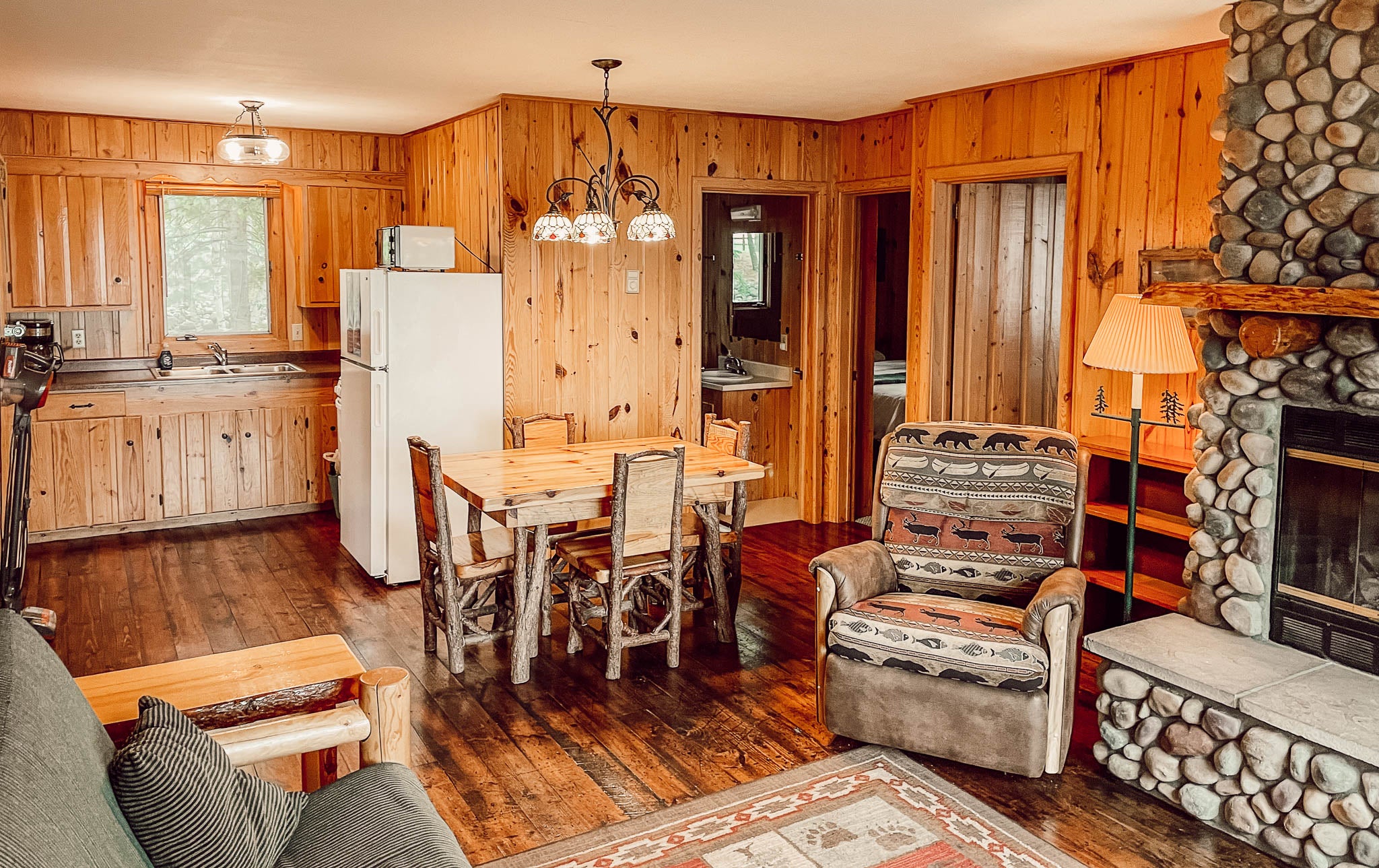 Cabin 4 has a stately wood burning fireplace, cozy, and has a great view!