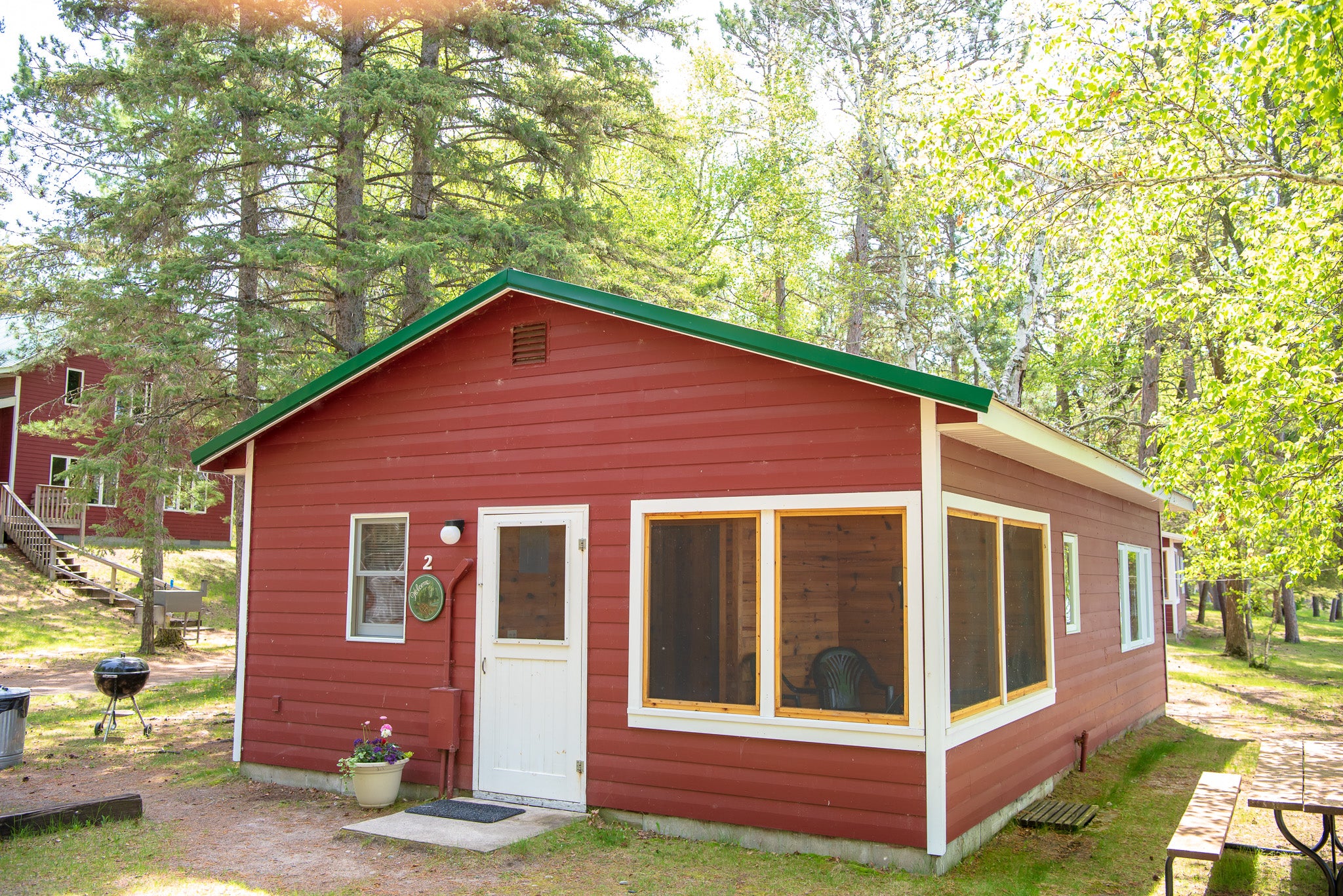 Cabin 2 is closest to the swimming beach and the most convenient choice for those who like to swim and sun, and don't mind being near the beach chairs! Knotty pine interior with large picture window facing the lake.