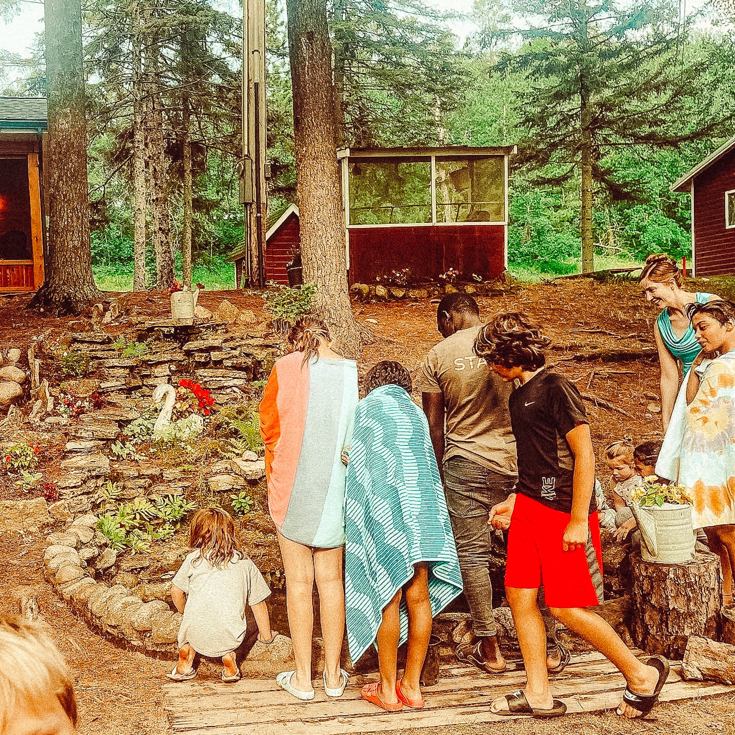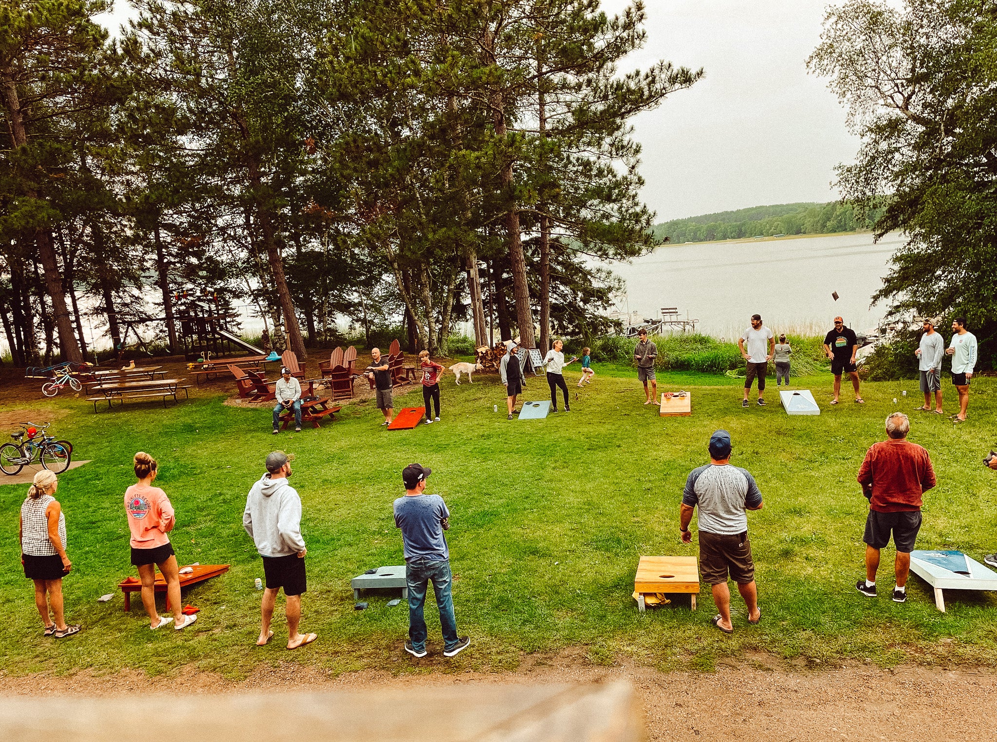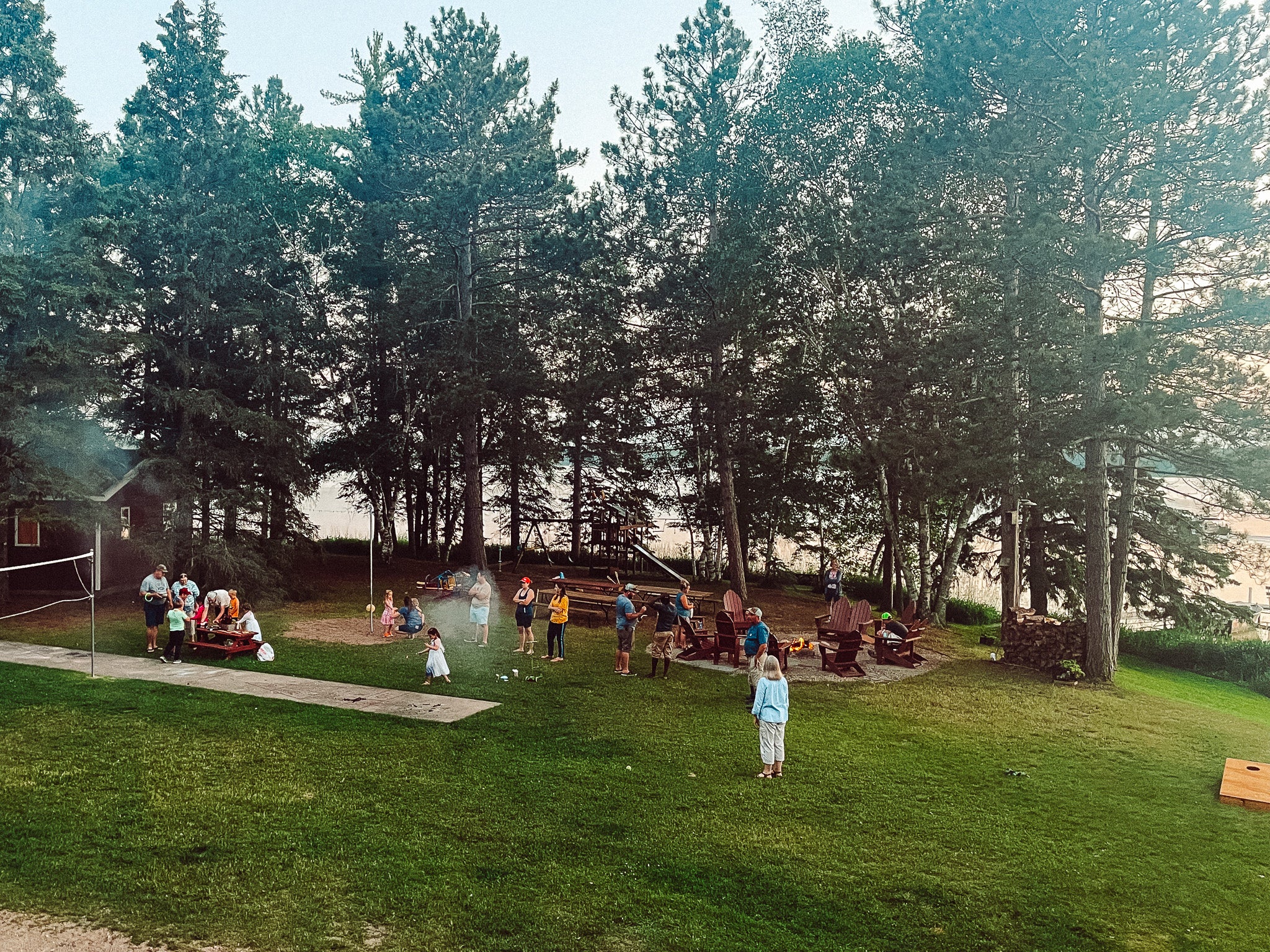 Our favorite activies in the community spaces include fires, playing night games (hello glow sticks!), watching the kids play while sipping coffee, and a competetive game of bags!